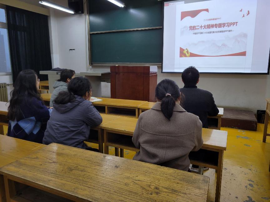 1110日下午,学院教工综合党支部在雁塔校区21009室召开学习二十大精神,培育新时代人才专题会议,支部全体党员参会,会议由党支部书记雷书宾主持。雷书宾将学院近期的学习安排进行了说明,并为支部全体党员讲授了关于专题学习二十大精神的微党课。随后,支部全体教职工围绕习近平总书记在中国共产党第二十次全国代表大会上的报告进行了热烈的讨论,大家一致认为,党的二十大是在迈上全面建设社会主义现代化国家新征程、向第二个百年奋斗目标进军的关键时刻召开的一次十分重要的大会,大会报告催人振奋,令人深受鼓舞。参会教职工表示,将以此次学习为契机,以改革创新为动力,强化工作效率,提升工作效能,提高服务师生能力,多措并举为学校和学院的发展做出自己应有的贡献。