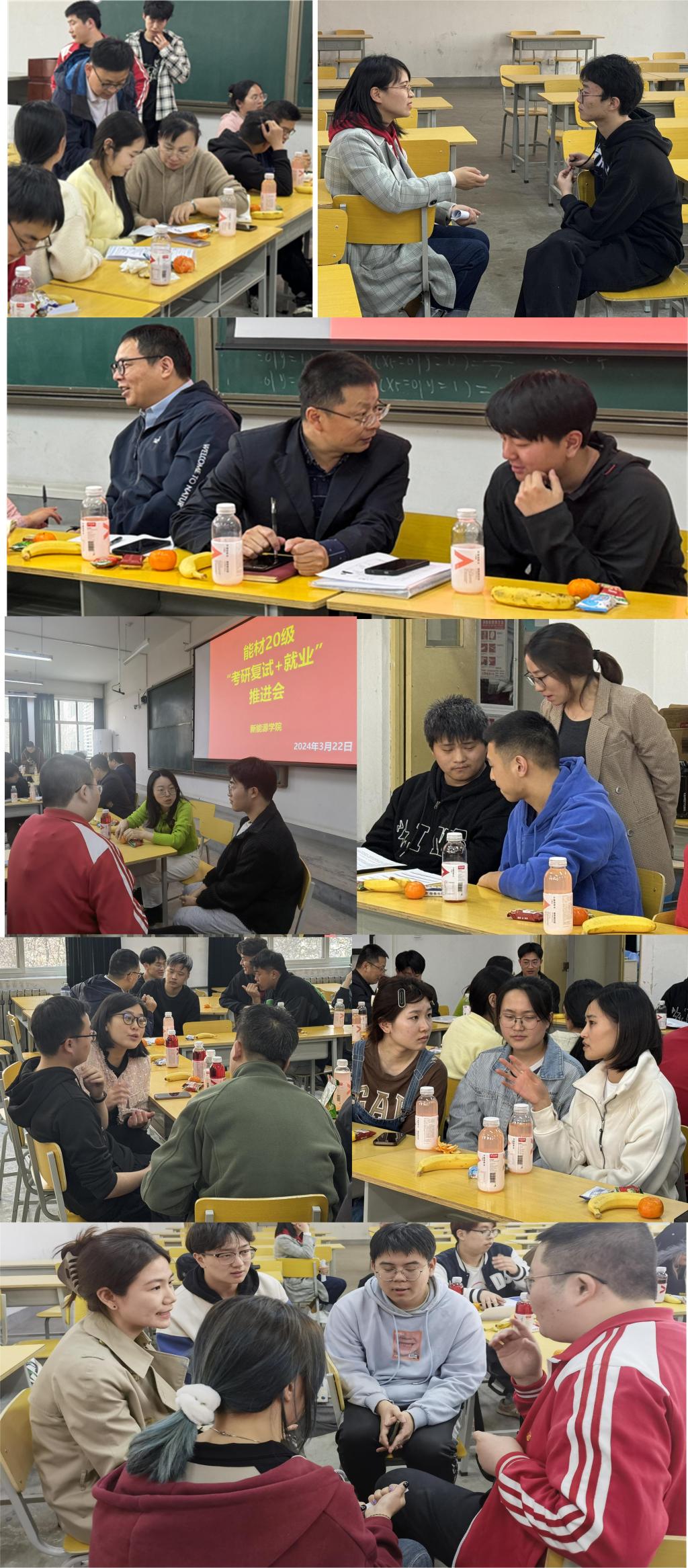 “2024届新能源材料与器件专业毕业生考研复试与就业指导圆桌会议—助力学子成长之路”在鄠邑校区博览楼224室举行。新能源材料与器件系教工党支部书记安敏荣,新能源材料与器件系副主任王磊,能材2001班主任吕英、能材2002班主任尚玉,李健、王党会等11名专任教师,毕业班辅导员靳晨璐及能材专业全体毕业生参会,会议由新能源材料与器件系主任肖美霞主持。