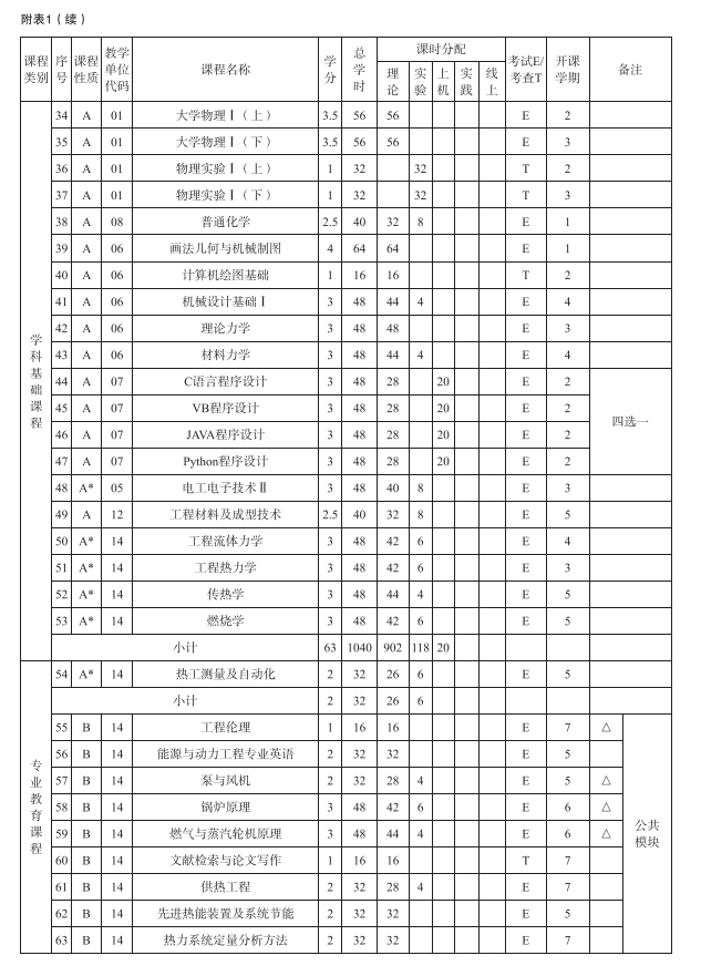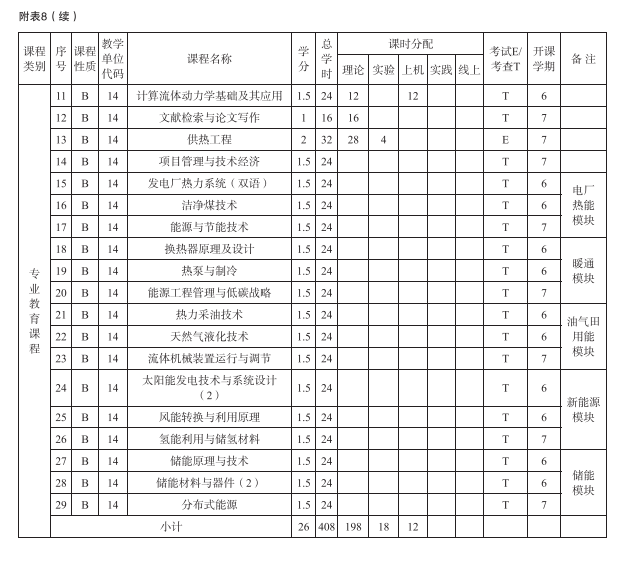 2021版能源与动力工程本科专业人才培养方案