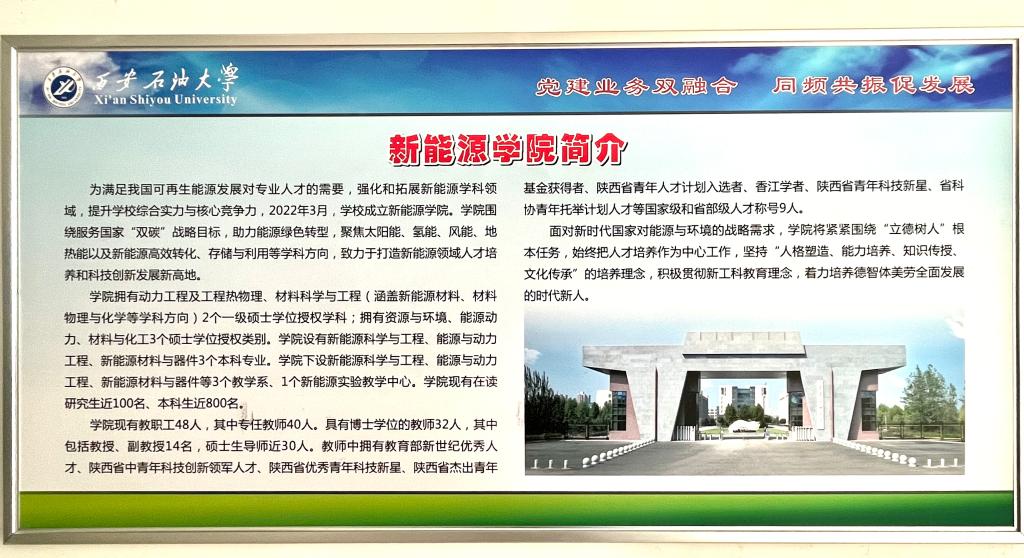在做好疫情防控工作的同时,聚焦主责主业,着力推进文化建设。近期,新能源学院携手党委组织部在鄠邑校区天工楼广泛开展了“党建业务双融合,同频共振促发展”党建文化墙和学院标识标牌形象墙建设活动,为学院全体师生精心打造了旗帜鲜明讲政治、突出特色有亮点的党建“文化墙”,合理布局了低碳绿色显特色、简洁大方接地气的学院形象墙,充分挖掘学院文化育人新动能,持续推动学院文化建设再上新台阶。
