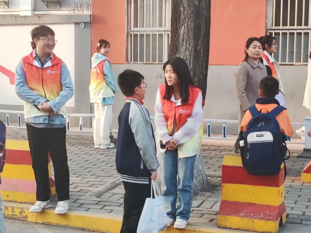 “小学生护学岗”活动。3月中下旬,学院团委、学生会主办的兆丰桥小学“小学生护学岗”活动如期开展。志愿者们走进兆丰桥小学,为学生们的安全保驾护航,同时也传递了关爱与温暖。活动开始前,兆丰桥小学负责人董老师对学生们放学顺序、放学路线、工作要求及注意事项进行了介绍,随后志愿者们与兆丰桥小学安保部门负责人就站位问题进行了仔细的沟通和部署。随着下课铃声响起,志愿者们为放学的学生指引道路,帮助过往车辆维持秩序,同时与学生家长亲切交谈。当最后一名学生走出校园,本次护学活动圆满落下帷幕。