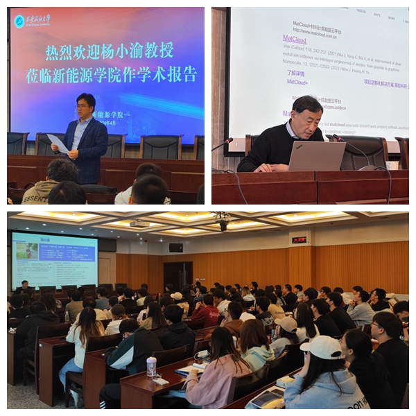 新程大讲堂第5讲在鄠邑校区弘石报告厅举行,中国科学院计算机网络信息中心杨小渝教授应邀作了题为“MatCloud材料智算云:国产新材料研发‘加速度’”的学术报告。本次报告由学院党委书记宋海洋主持,学院师生代表共计100余人参加此次报告会。