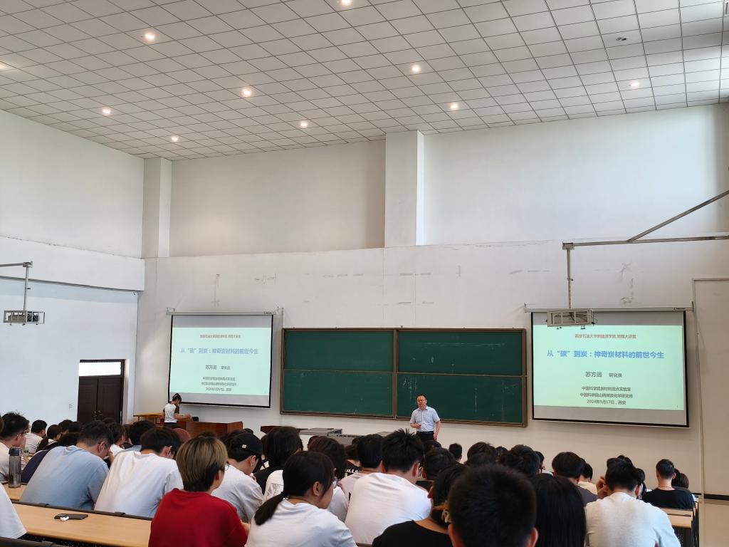 新程大讲堂第9讲“从‘碳’到‘炭’:神奇炭材料的前世今生”在鄠邑校区天工楼115室举行,本次讲座特邀中科院山西煤炭化学研究所苏方远研究员担任主讲,本次讲座由学院学生工作办公室主任马武军主持,学院2021级全体学生参加。讲座中,苏方远深入浅出地介绍了炭材料的神奇之处,他从碳元素的来源、炭材料的制备、新型炭材料和突破炭材料垄断封锁四个方面进行了详细讲解。在场同学们从他的讲解中,认识到了从生命体的构成到地球的地质构造,碳元素都扮演着至关重要的角色。随后,苏方远详细阐述了炭材料的制备过程,包括原料选择、高温处理、成型工艺等多个环节,使得在场的师生们对炭材料的制作过程有了更加清晰的认识。随后,他重点向同学们介绍了新型炭材料的种类和应用领域,并强调随着科技的不断发展,炭材料的应用领域也在不断拓宽,如航空航天、新能源、环保等领域都离不开炭材料的支持。同时,苏方远还分享了一些最新的研究成果,展示了炭材料在解决能源危机、环境污染等全球性问题中的巨大潜力。最后,苏方远谈到了突破炭材料垄断封锁的重要性,呼吁广同学们要关注国家重大战略需求,努力在炭材料领域取得更多创新成果,为国家的科技进步和产业发展贡献力量。