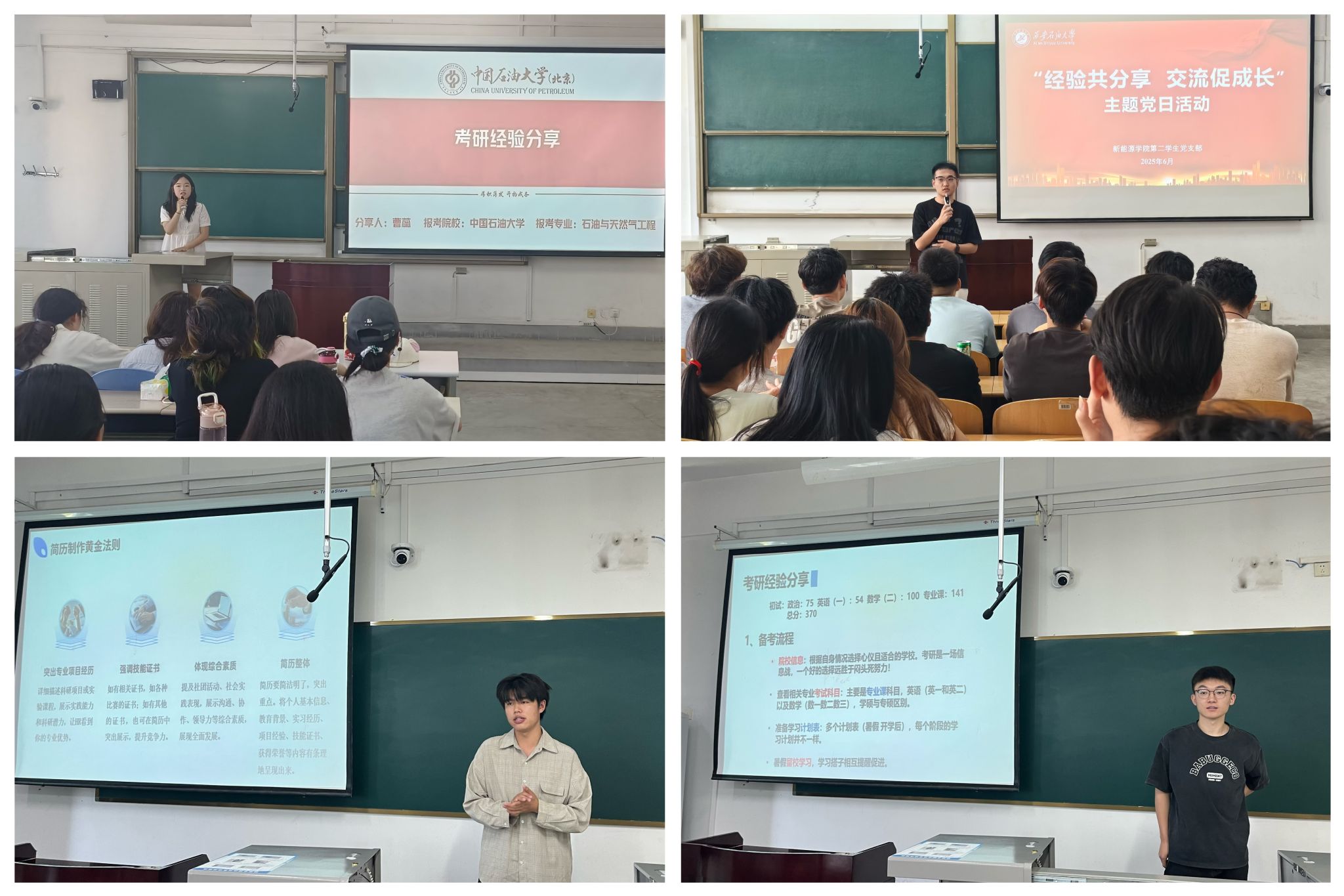 各本科生党支部陆续开展“经验共分享,交流促成长”主题党日活动,组织2025届在考研升学、名企就业等方面表现突出的学生党员,面向2022级本科生开展经验分享。本次活动是学院党委推进“党建+育人”模式创新的重要举措,通过构建“传帮带”机制,既发挥了学生党员的先锋模范作用,又强化了基层党组织的服务育人功能。学院将以此次活动为起点,持续深化党建引领学风建设的长效机制,为培养新时代新能源领域卓越人才注入红色动能。