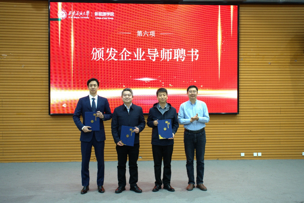 聚焦“新能源与油气融合”的特色发展方向表示高度认可。作为企业导师,他郑重承诺将切实履行“架桥梁、传经验、育新人”的使命:将产业一线鲜活案例带进课堂,转化为优质教学资源;搭建校企实践桥梁,组织同学们走进生产车间、电站等一线场景参与实操锻炼;构建校企创新合作链,推动企业技术难题与学生科研项目精准对接、联合攻关。同时,他希望同学们筑牢专业根基,夯实基础学科知识,练就过硬专业技能;保持好奇之心,紧盯行业技术迭代趋势,在跨学科学习中挖掘创新点;锤炼实干之风,躬身实践、动手动脑,在解决实际问题中积累经验、实现成长;胸怀家国情怀,将个人发展与国家能源安全、“双碳”目标紧密结合,自觉践行新能源人的使命与担当。
